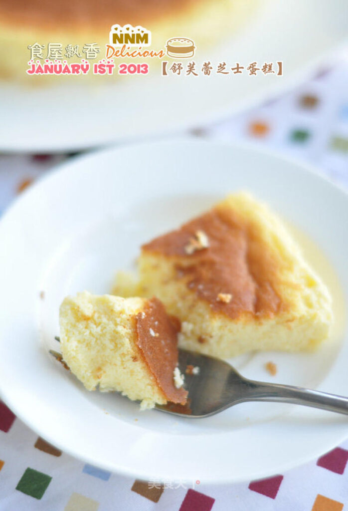 9. Line a mold with parchment paper, pour in the cheese batter. Bake at 175°C for 15 minutes, then reduce to 165°C and bake for another 25 minutes. Wrap the bottom of the mold in foil and bake in a water bath.