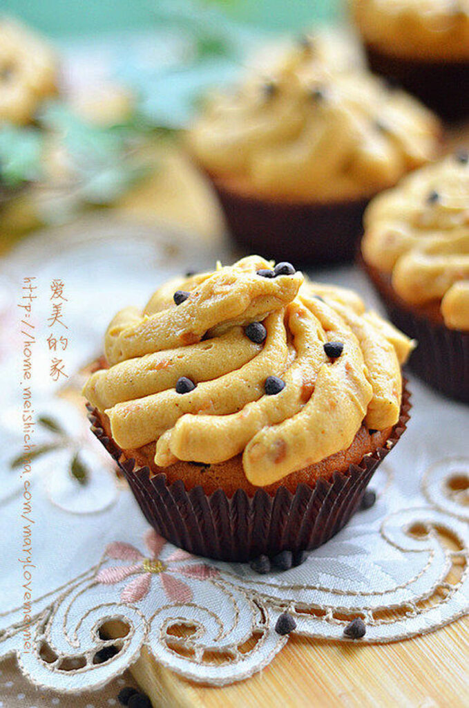 2. Place the softened butter in a large bowl and cream it together with peanut butter and granulated sugar until a uniform butter mixture forms. 3. Gradually add the beaten egg mixture in small amounts, mixing thoroughly after each addition until fully incorporated. 4. Add the sifted low-gluten flour, almond flour, and baking powder. 5. Use a rubber spatula to fold the mixture with a cutting and folding motion. Add the milk before the dry ingredients are completely mixed in. 6. Incorporate the baking chocolate chips. 7. The finished batter. 8. Spoon the batter into muffin paper cups, filling them about 70-80% full. 9. Bake in a preheated oven at 180°C for approximately 20 minutes, then remove. 10. Prepare the ingredients for the peanut butter cream.11. After the butter softens, whisk it until smooth.